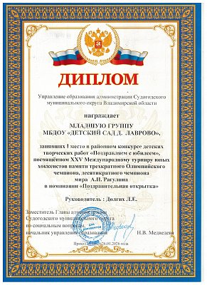 1 место в конкурсе творческих работ "Поздравляем с юбилеем"